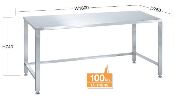 Bàn thao tác inox chân điều chỉnh BTT1000I-750CN - Toàn bộ khung bằng Inox SUS 201 - Khung hộp 40x40x1,2mm - Mặt bàn bằng inox tấm dày 1,2mm - Chân tăng chỉnh 3-5mm - Khung hàn cố định