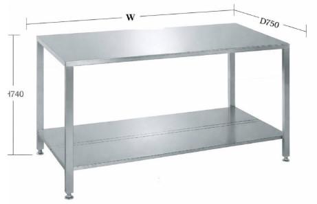 Bàn thao tác inox chân điều chỉnh BTTM1000I-750DC-2T - Khung hộp 40x40x1,2mm - Mặt bàn bằng inox tấm dày 1,2mm - Chân tăng chỉnh 3-5mm - Tải trọng mỗi sàn 100Kg - Khung hàn cố định - Sơn tĩnh điện màu theo yêu cầu (Xanh, Ghi, Trắng).