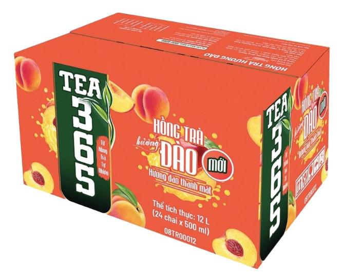 Thành phần chính của hồng trà Tea365 hương đào gồm nước, sirô fructose-glucose, đường, trà đen với hàm lượng khoảng 6g/L, hương liệu đào nhân tạo giống vị tự nhiên và các chất điều chỉnh độ acid, chất chống oxy hóa, giúp bảo quản sản phẩm lâu dài mà vẫn giữ được hương vị tươi ngon. Sản phẩm đóng chai 500ml thuận tiện cho việc mang theo và sử dụng mọi lúc mọi nơi.