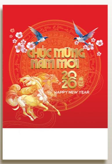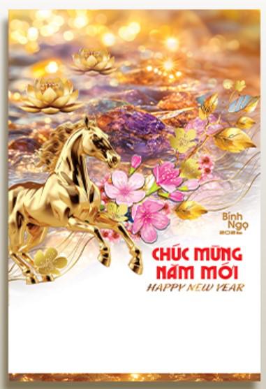 với gam vàng kim – đỏ sang trọng, kết hợp hình ảnh phong thủy cát tường như ngựa vàng, cá chép, thuyền buồm, hoa sen… Mỗi tờ mang thông điệp may mắn, tài lộc và thịnh vượng.