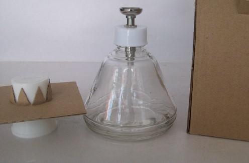 Thiết kế chai thủy tinh chịu hóa chất, dung tích 180ml, kích thước gọn (12x9x9cm, nặng 0.22kg), nắp nhựa phủ PP chống rò rỉ, bơm kim loại all-metals hút chính xác, chống tĩnh điện phù hợp môi trường sạch.